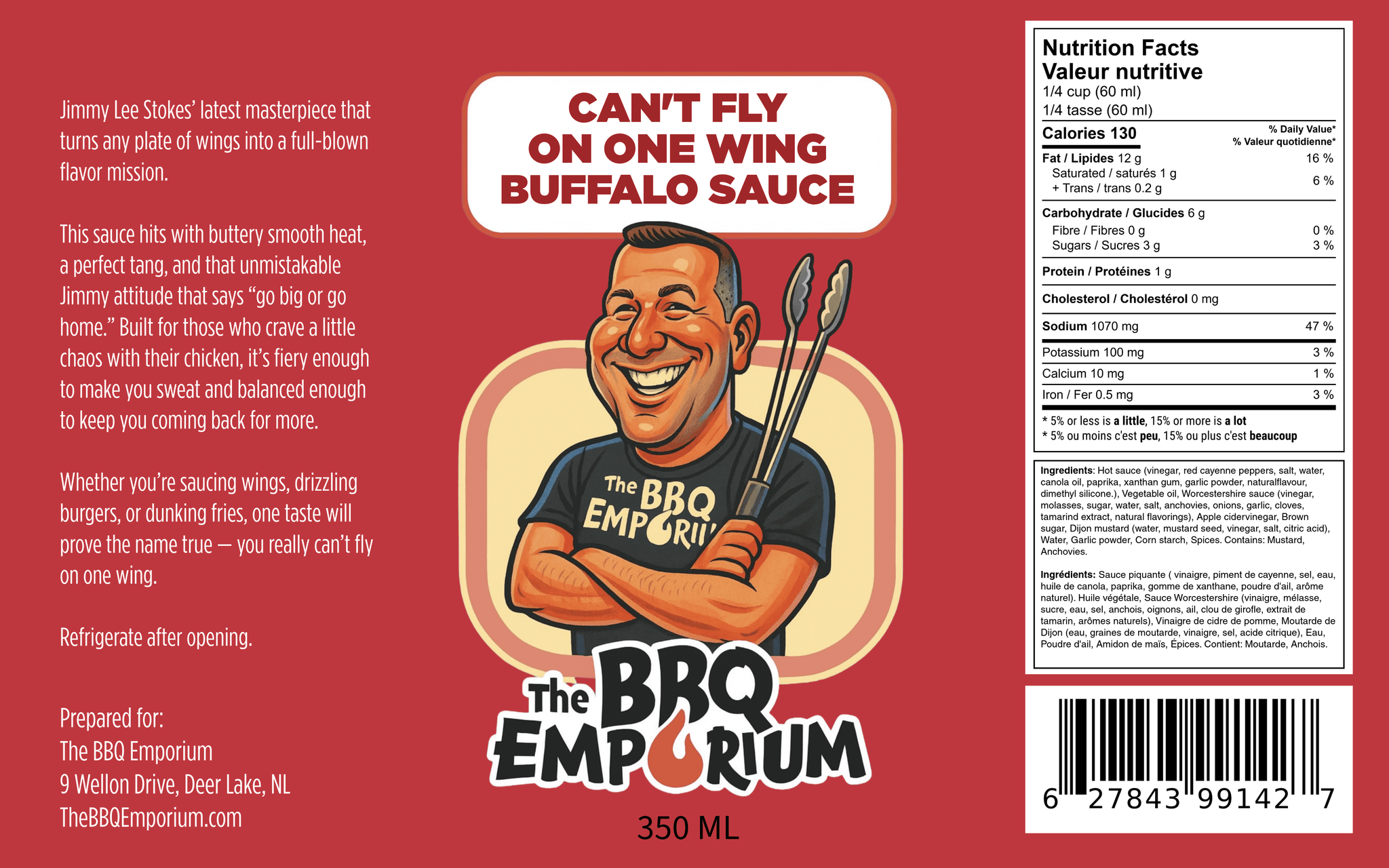 Whether you’re saucing wings, drizzling burgers, or dunking fries, one taste will prove the name true — you really can’t fly on one wing.
